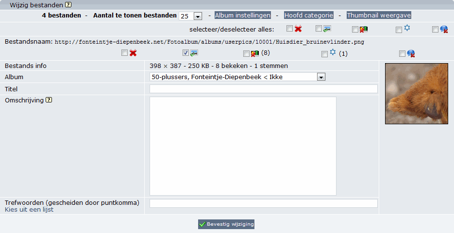Note: If the first method is used and the image later deleted, the thumbnail will also be deleted and the default Coppermine thumbnails will be displayed, instead.